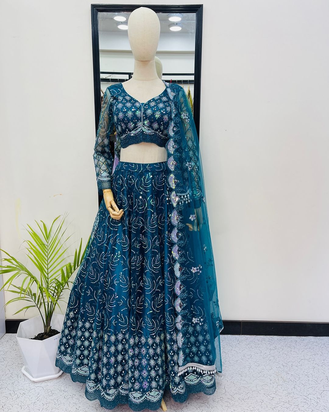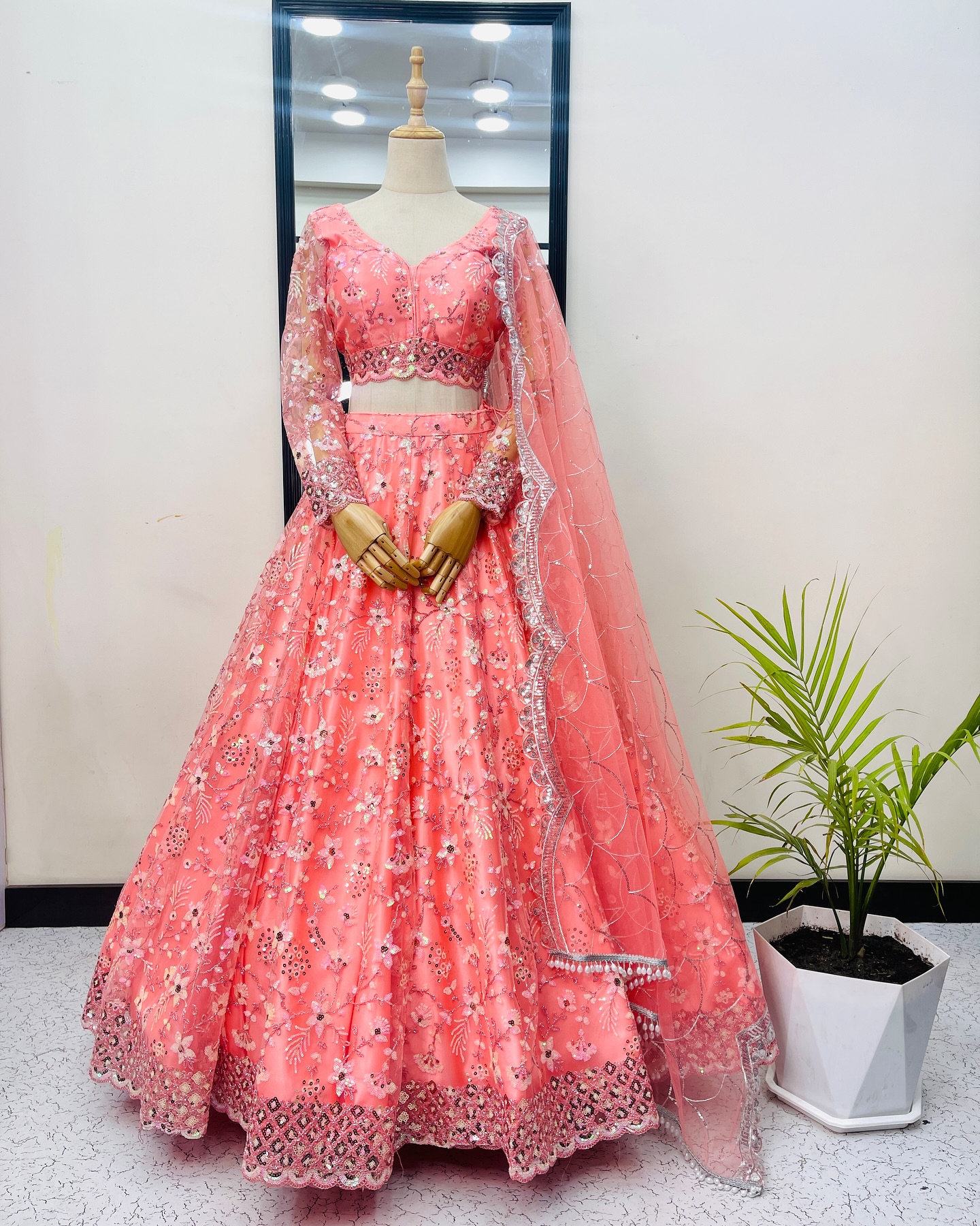 "Draped in beauty, adorned with tradition. Our lehengas are a celebration of timeless style." πŸŒΉπŸ‘—
